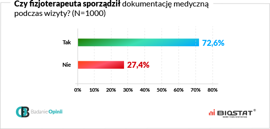 Dokumentację medyczną podczas wizyty sporządziło niemal 3/4 fizjoterapeutów