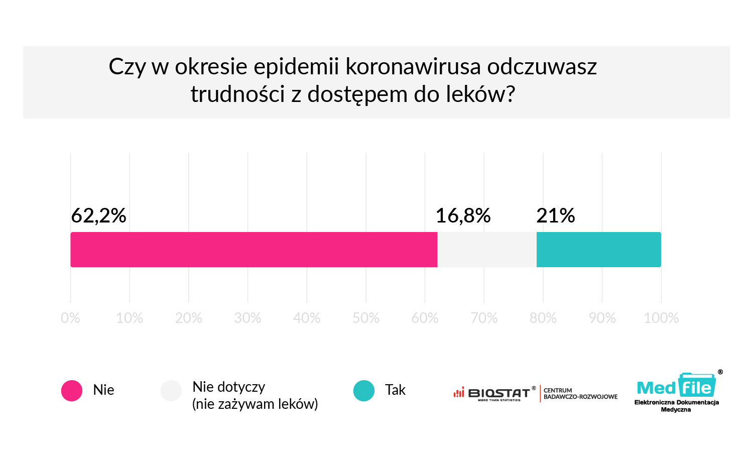 Badanie „Pacjenci w czasie koronawirusa” przeprowadziło Centrum Badawczo-Rozwojowego BioStat® i Medfile® SA. Sondaż metodą CAWI zrealizowano 22 marca 2020 roku na grupie 1000 mieszkańców Polski.