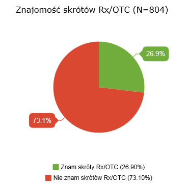 W badaniu zweryfikowano podstawową wiedzę respondentów z zakresu rozróżniania leków od istotnych z punktu widzenia realizowanego pomiaru, suplementów diety. Ta część ankietyzacji wykazała m.in., że blisko ¾ badanych nie zna/nie spotkało się ze skrótami Rx i OTC, mimo iż sukcesywnie dokonuje zakupu leków.